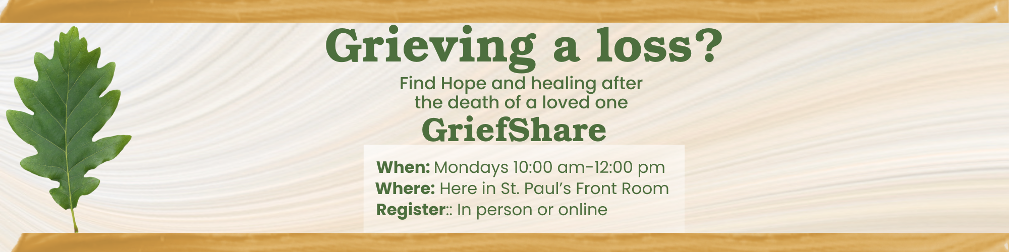 If you are grieving the loss of a loved one, you are not alone. Join us for GriefShare, a 13-week Christ-centered support group, beginning March 2 from 10:00 AM–Noon.